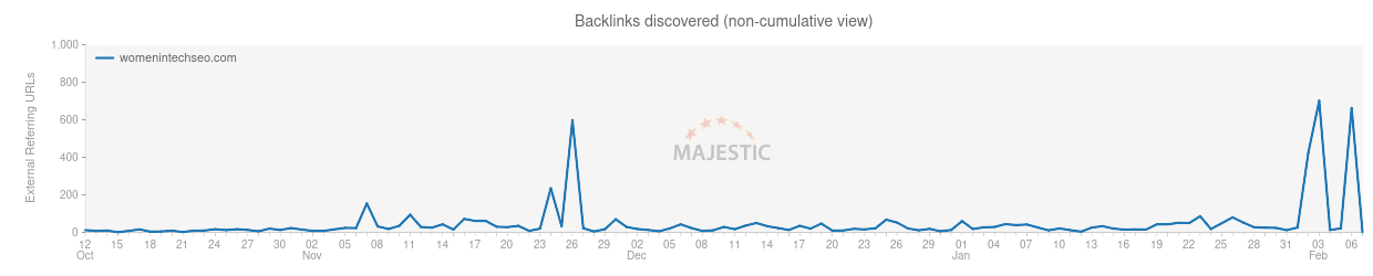Chart note: Default daily view shows data points for any given day. Since our crawl rates increased considerably since 2006 it is advisable to either use normalized view and/or compare domains with each other in order to get more comparable data.